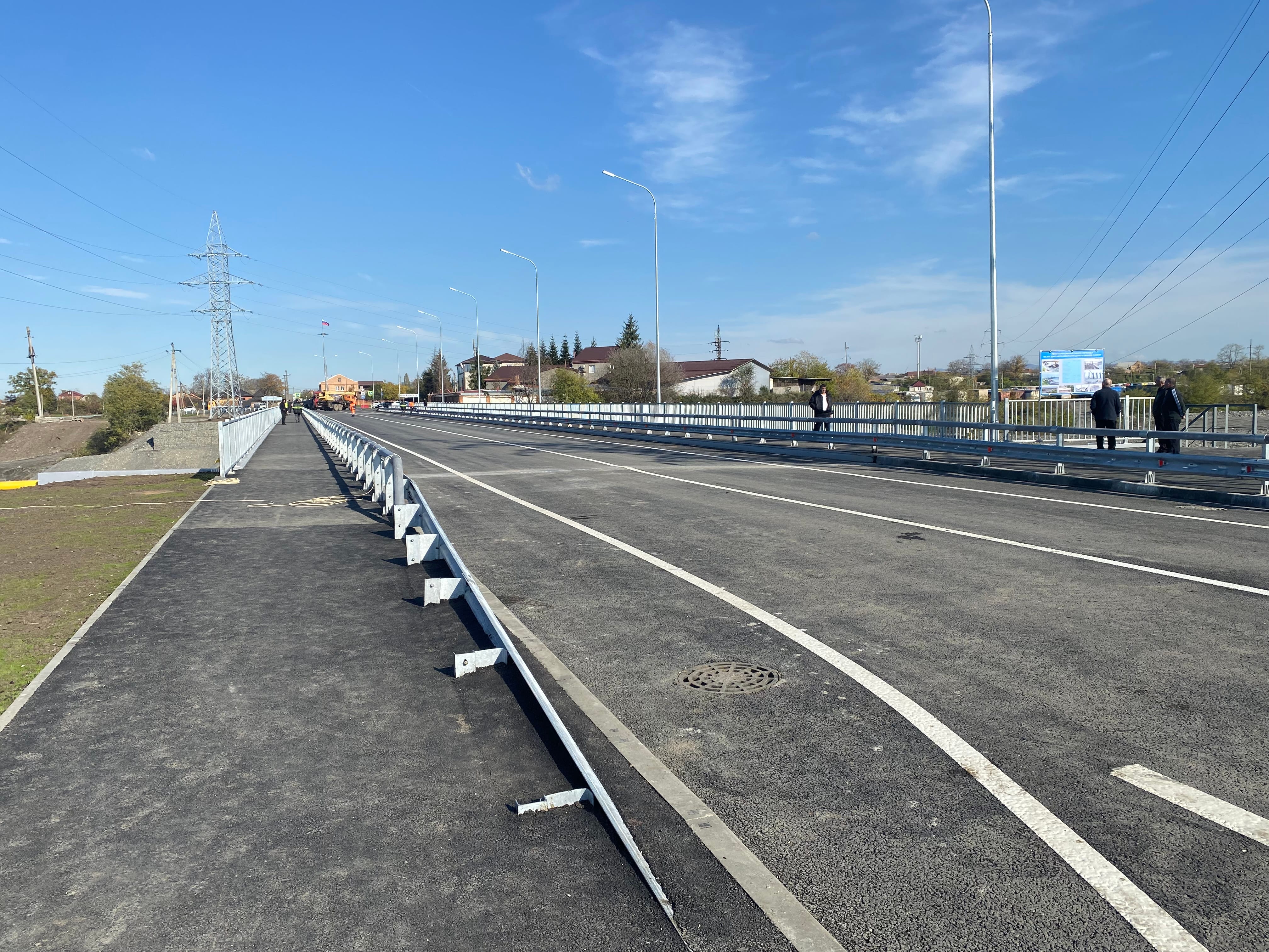 Протяженность объекта — 136,3 пог. м. В процессе работ, стартовавших в 2024 году, специалисты установили опоры моста, выполнили монтаж балок пролетных строений, обвязку межбалочных швов и их омоноличивание. Устроено два слоя асфальтобетонного покрытия, нанесена горизонтальная дорожная разметка. Кроме того, на объекте обустроены тротуары, освещение, барьерные ограждения, благоустроены подъезды к мосту со стороны селений Михайловское и Ногир.